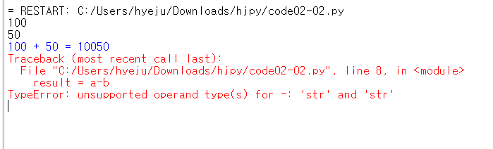 ๋ฌธ์์ด์ ๋ํ๋ผ๋ ๋ช ๋ น์ ์ฒ๋ฆฌํ์ง ๋ชปํ๊ธฐ ๋๋ฌธ์ ์ค๋ฅ!