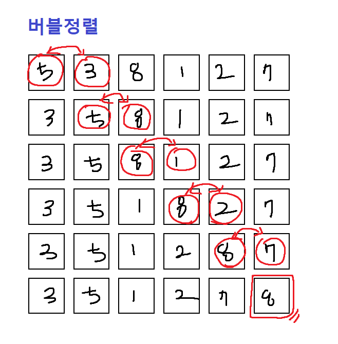 โญ ๋ฒ๋ธ ์ ๋ ฌ (bubble sort)