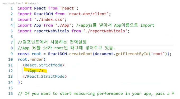 - <app/> root ๋๋ํจ์์ ์ง์ด๋ฃ์