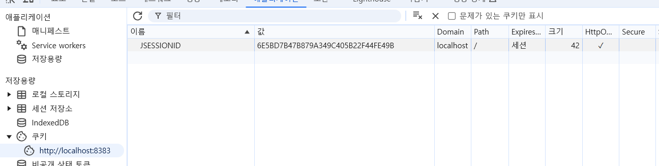 - ์ธ์ ID๊ฐ ํฌํจ๋ ์ฟ ํค(JSESSIONID)๊ฐ ์ฌ์ฉ์์ ๋ธ๋ผ์ฐ์ ์ ์์ฑ๋์ด ํด๋ผ์ด์ธํธ ์ธก์ ์ ์ฅ๋ฉ๋๋ค.