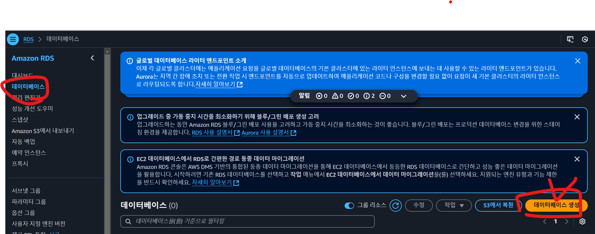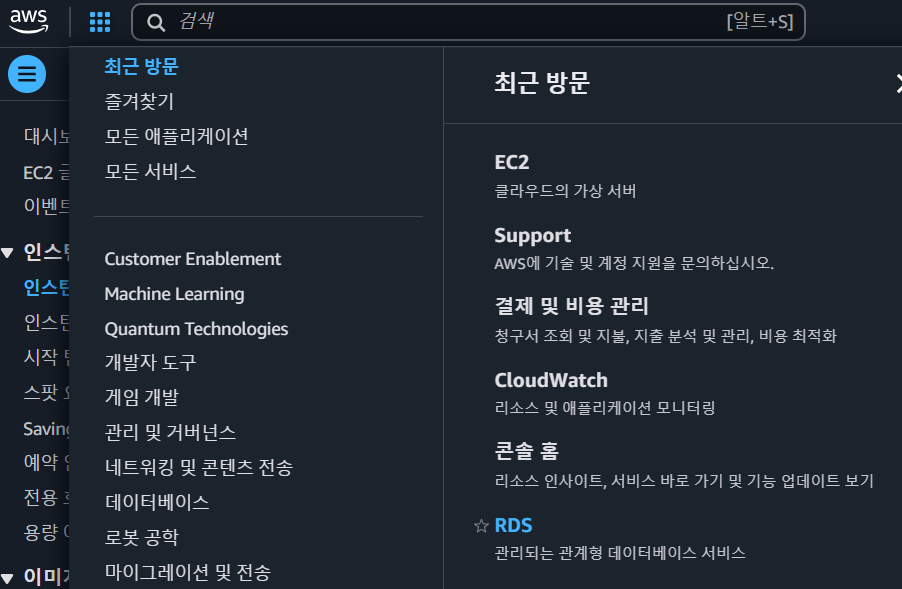 AWS RDS ์ ๋ค์ด๊ฐ์ค๋ค.