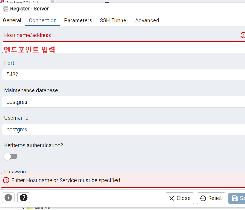 `Host Name/Adress` : ์ค๋ํฌ์ธํธ ๋ฃ๊ธฐ
